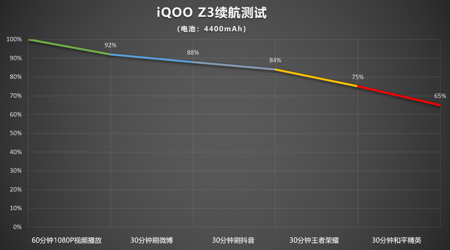 iQOO Z3内置4400mAh大电池,支持55W闪充,充电部分在同档位很有优势。iQOO Z3还对Type-C充电接口以及线材进行了优化,“铑钌”金属镀膜可以提升接口的耐腐蚀耐磨损性能,更加可靠耐用。