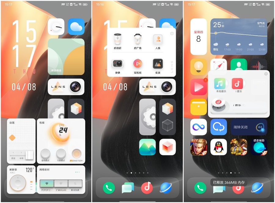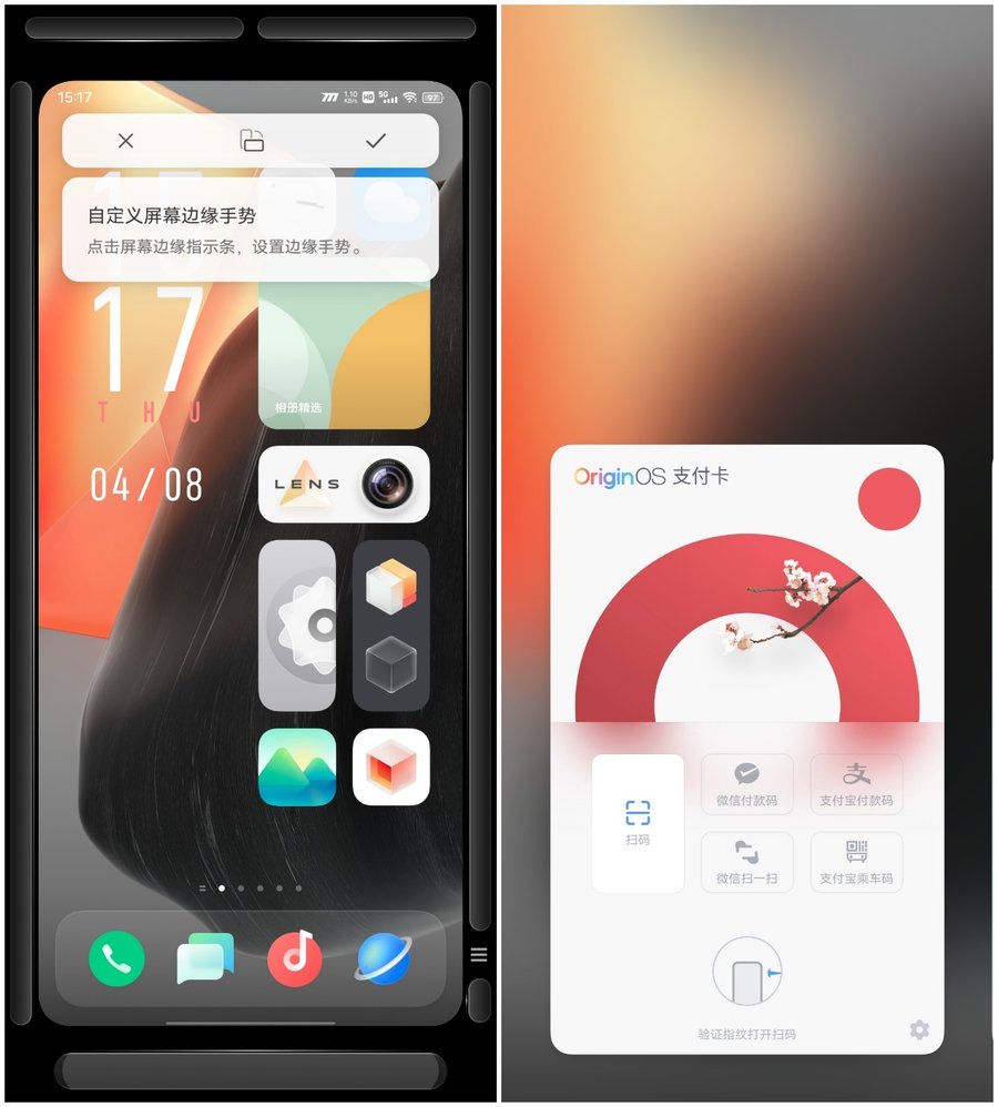 此外,OriginOS for iQOO还提供了iQOO专属控制台,能够在桌面快速调节性能模式、屏幕刷新率等。你还可以自定义屏幕边缘手势,找到更符合自己习惯的操作方式等。