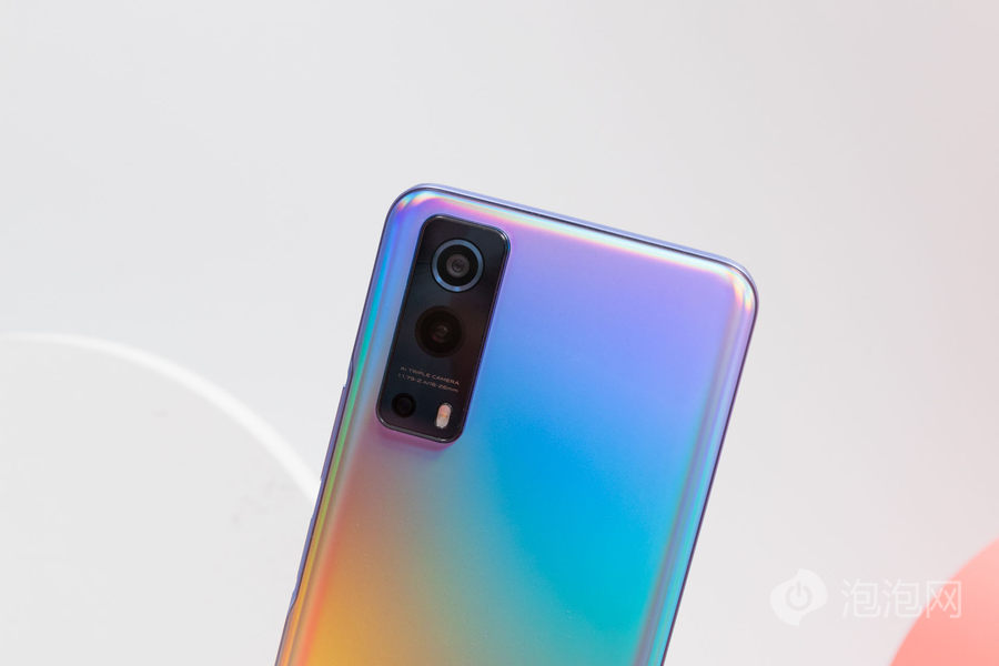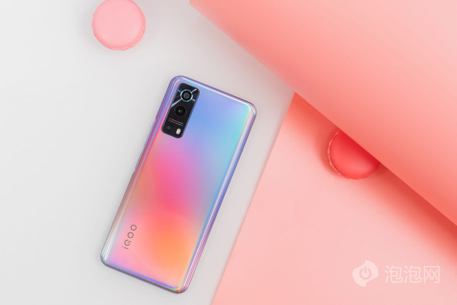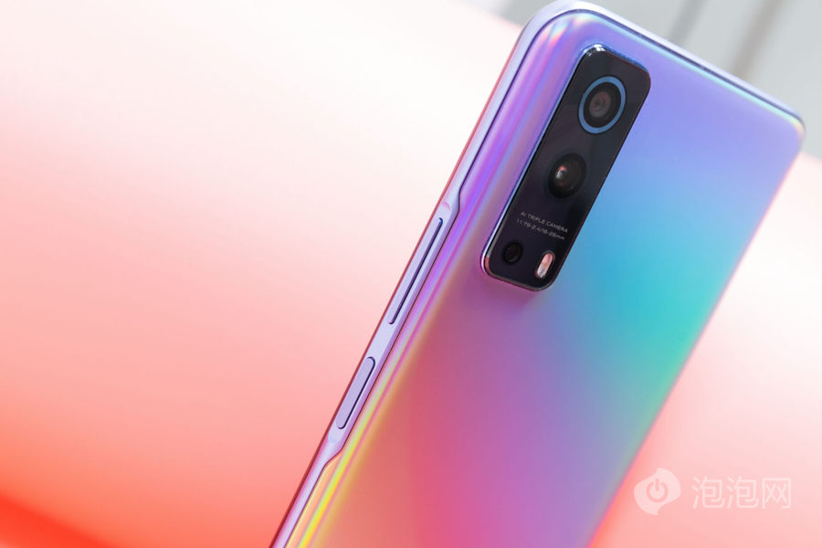 外观方面,iQOO Z3后置摄像头模组为竖向长条矩形设计,整体效果自然和谐。iQOO Z3提供深空、云氧、星云三种配色可选,评测机为星云配色。星云配色背面有淡淡的色彩渐变,不同角度能看到幻彩效果,比较潮流。