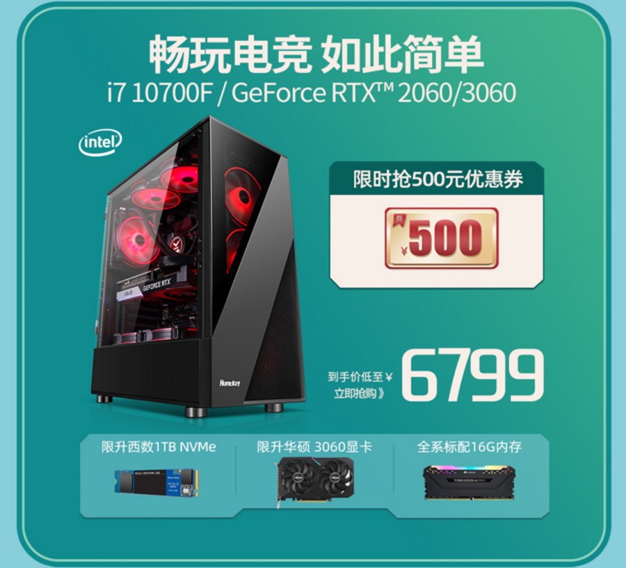 攀升十代i7 10700F/RTX2060/3060游戏主机>>购买链接