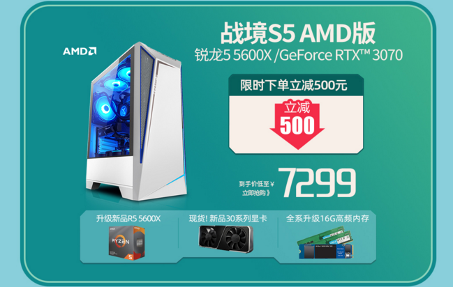 攀升战境S5 AMD 5600X/2060/3060/3070游戏主机>>购买链接