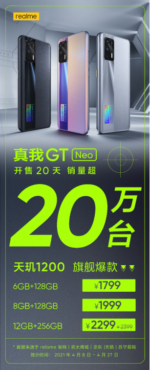 真我GT Neo 20天累计销量超20万台