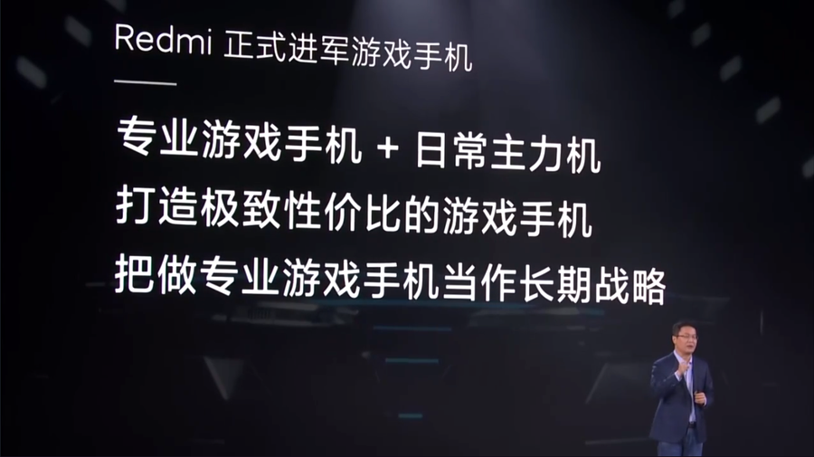 一开场,Redmi品牌总经理卢伟冰宣布Redmi正式进军游戏手机。他指出,传统游戏手机有太厚、太重、太花哨三大痛点,因此被迫成为很多用户的备用机,并且由于市场需求量小,价格都非常贵。Redmi要做的专业游戏手机,将同时是一款极致性价比的日常主力机。