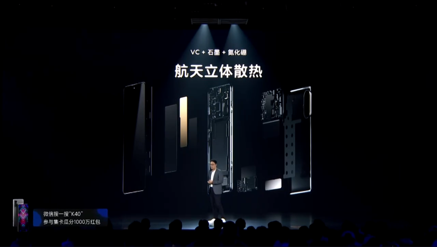 K40游戏增强版采用VC+石墨+氮化硼组合的航天立体散热