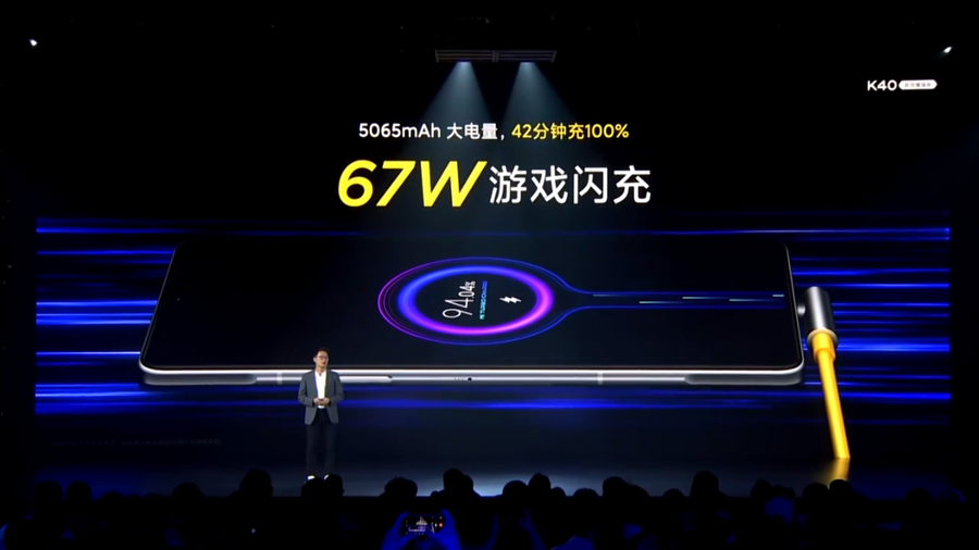 K40游戏增强版内置5065mAh大电池,支持67W闪充,42分钟可充满电量。同时它的机身薄至8.3mm,重量205g,是目前最轻薄的游戏手机。