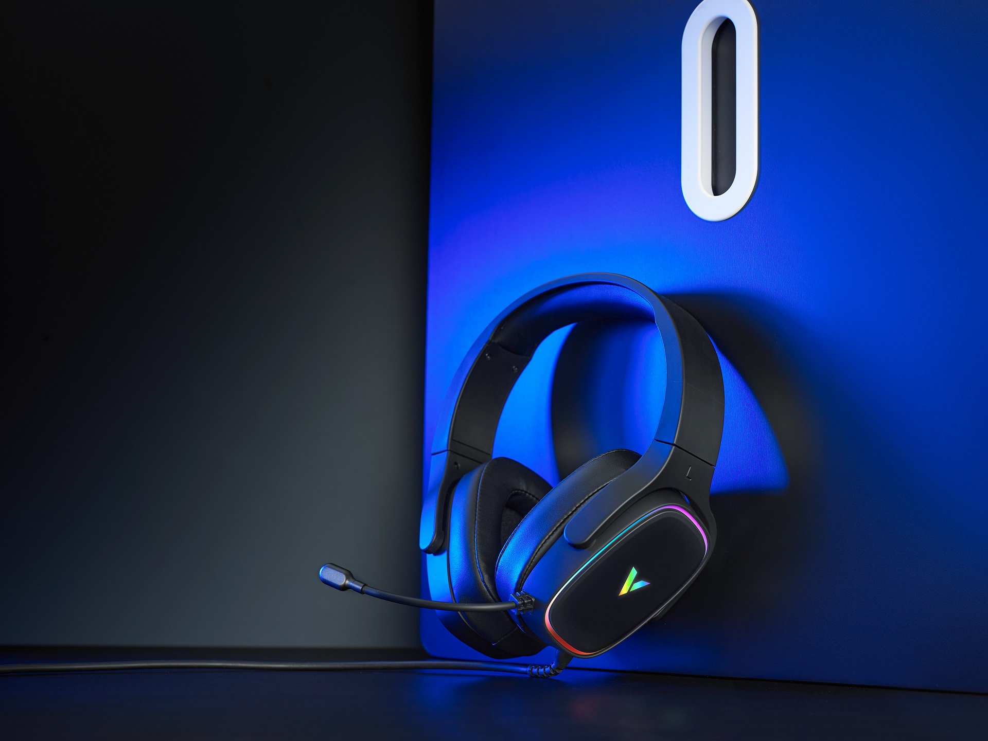 敢“黑”,才带感。VH700耳机整体风格至简派,整体架构以灵活轻量化为主,带来细腻的细磨砂新触感。以创造性的风格设计打造游戏感,来自耳罩的环状灯带,以及正中的logo灯,两者同步的RGB轮换灯光效果,占据焦点,从不同角度皆能闪耀流光溢彩。
