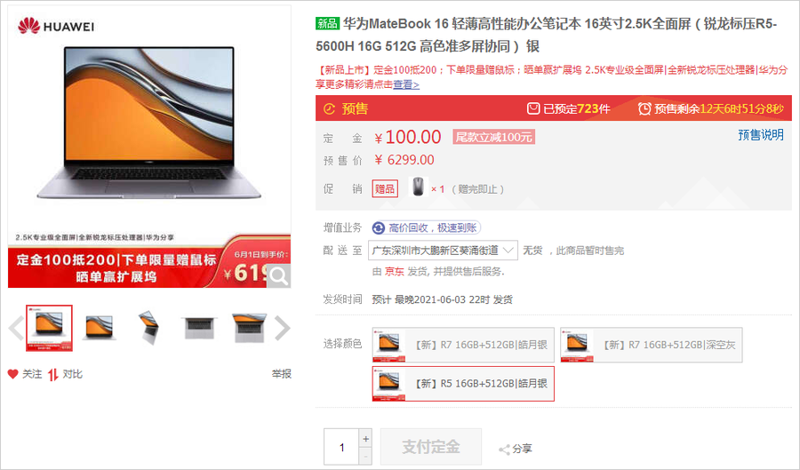 华为Matebook16笔记本6199起:加持AMD锐龙