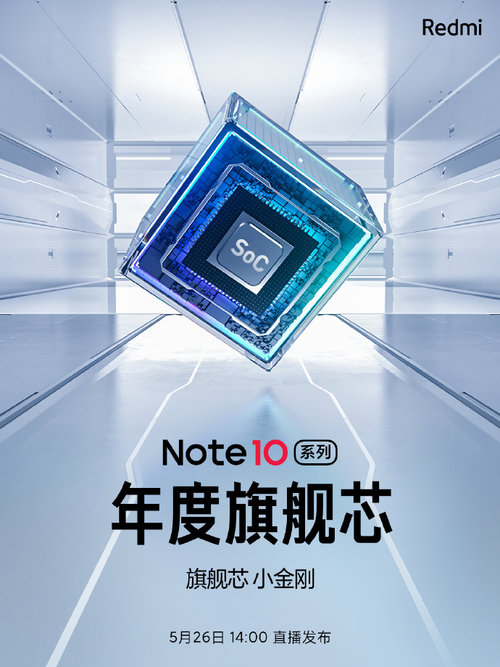 Redmi Note10系列已经宣布将于5月26日14:00发布,号称十全十美的第十代小金刚。今日,Redmi官方表示,Note10系列将配备一颗年度旗舰芯,采用旗舰大核