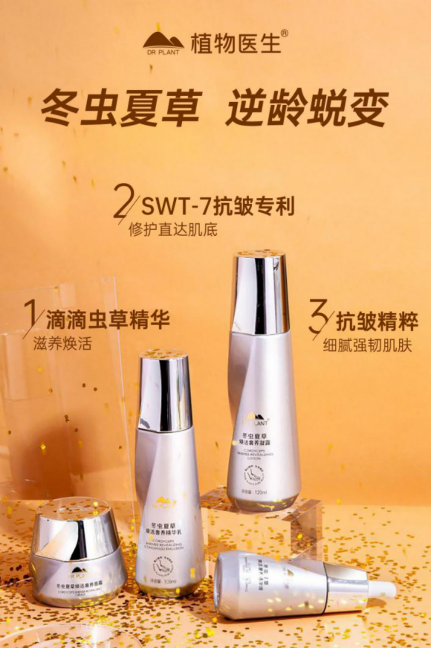 植物医生研发中心选取优质完整的冬虫夏草,5道工序筛选,超声萃取,10根虫草仅萃取1ml精粹,富含17种氨基酸,丰富的核苷、虫草素及多糖能清除86.5%的羟基自由基。