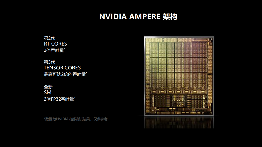第三代Tensor核心支持稀疏架构和如DLSS这样更先进的AI算法,可以为游戏提供巨大的性能提升,并支持更多的AI 功能。