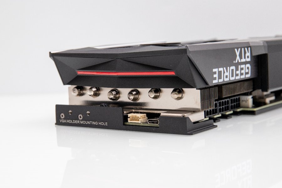 下方可以看见6根粗壮的镀镍热管,PCB上还留有一个5V的ARGB同步接口,可以与其它品牌的主板进行灯光同步,并且提供一个USB Type-C接口用于传输图片到小屏幕。