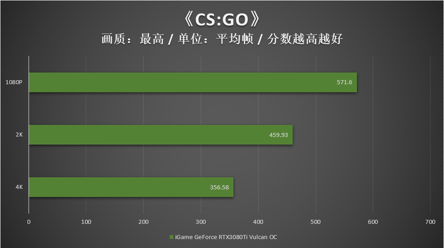 在《CS:GO》和《彩虹六号:围攻》的BenchMark测试中可以看到,即便在最高的画质设定下,iGame GeForce RTX 3080 Ti Vulcan OC可以轻松满足FHD+360Hz、2K+240Hz、4K+144Hz的高端电竞需求。