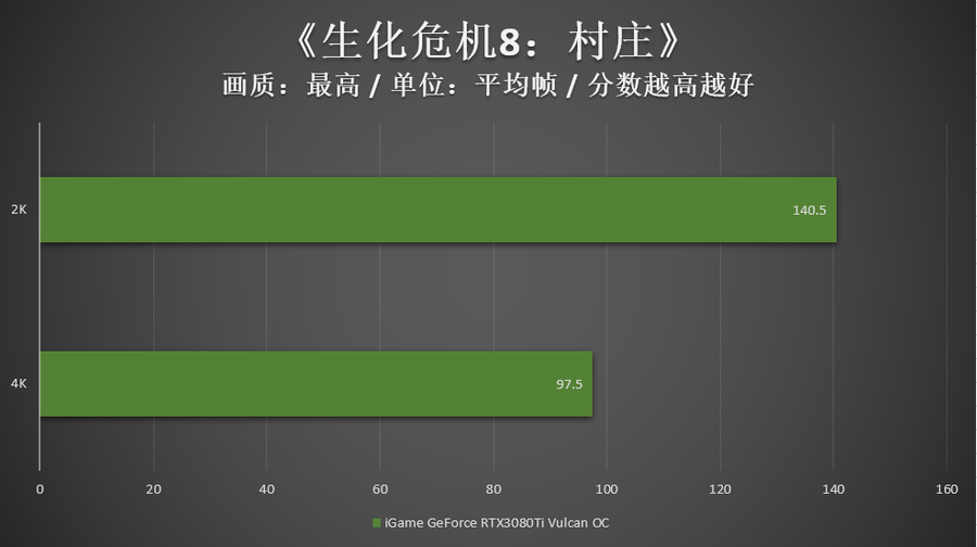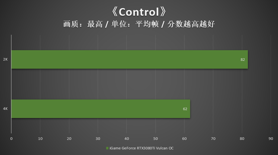 而面对《生化危机8:村庄》和《Control》两款光追大作,iGame GeForce RTX 3080 Ti Vulcan OC即便在没有DLSS加持的情况下,仍然将4K分辨率驾驭得游刃有余。