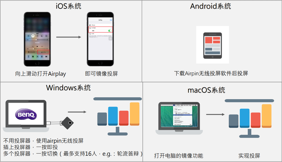 其次,方便携带和连接投屏对户外展映同样重要。相比于笨重、线缆繁杂的传统投影仪,明基E582在保证高性能的同时身材也十分小巧,占地面积仅和一部笔记本电脑差不多大。而且它自带热点,支持无网络环境下的无线投屏,手机、平板、电脑都能轻松投屏,告别各种线缆和转接器,只需一根电源线就能搞定一切。