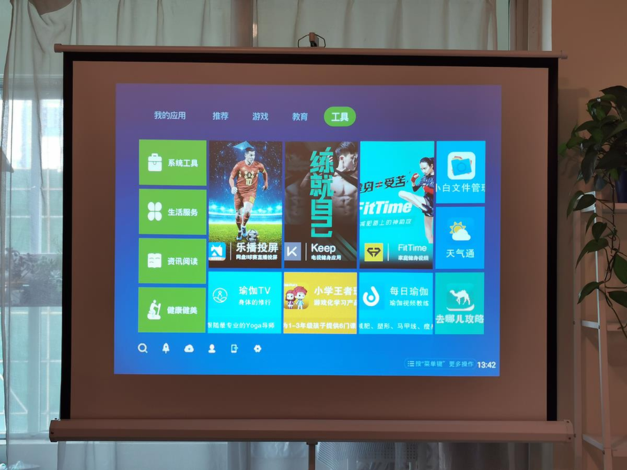 明基E582凭借搭载智能安卓系统和内置16G的存储空间,也能进行应用下载和文件存储,还可以直接读取U盘内任意格式的文档、表格、PPT、图片、影音等等,单机使用功能同样强大。投影仪内置10W大功率扬声器,除了支持自带的遥控器外,我们也可以用语音和手机进行遥控,或者蓝牙连接键鼠、音响等外设。