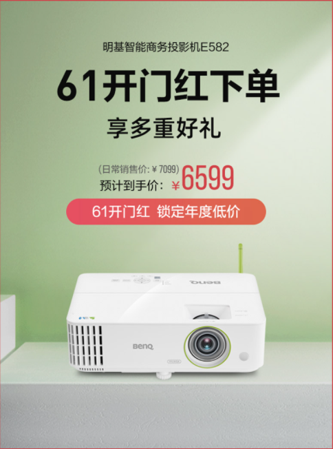 6.18年中大促即将到来,如果你想添置一款各种场景下都能方便投屏,并且随时享受高清画质的投影设备,明基智能商务投影仪E582一定是非常值得推荐的爆款。目前它在天猫明基旗舰店6.18期间限时立减500元,仅需6599元即可入手,还享受花呗12期分期免息,以及限量抢airpods或哈曼卡顿音箱等优惠。