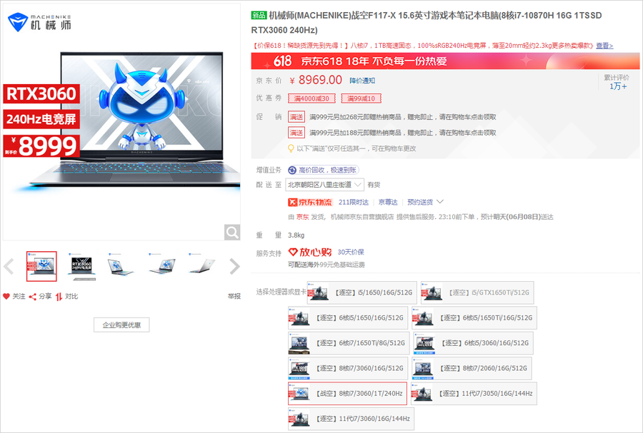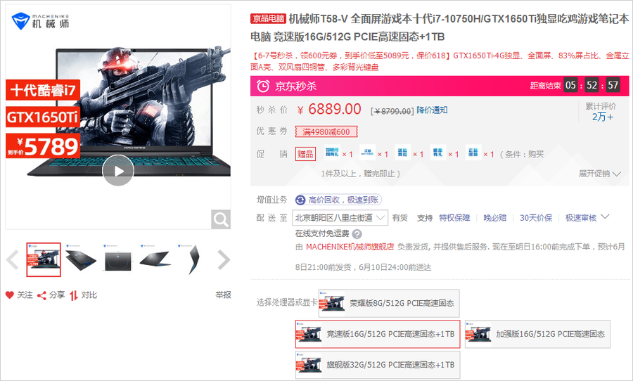 618添置高性能笔记本,笔者推荐大家到机械师京东旗舰店瞧一瞧。喜欢游戏的玩家可以选择F117毒药、F117-X、T58-V等机型,追求轻薄办公的用户可以选择创物者YOUNG15。这些热销机型眼下均拥有诱人的促销活动,给你看得见的实惠!