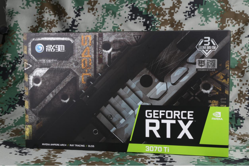 影驰 GeForce RTX 3070 Ti 黑将 OC包装盒依旧是经典的军事风格,辨识度极高。