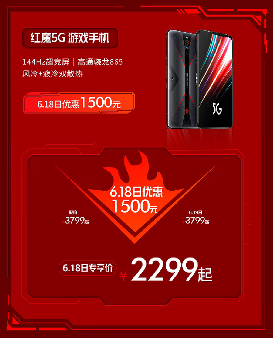 超级让利:红魔6R优惠300元、红魔6限时优惠200元、红魔5S优惠1000元,红魔5G优惠1500元