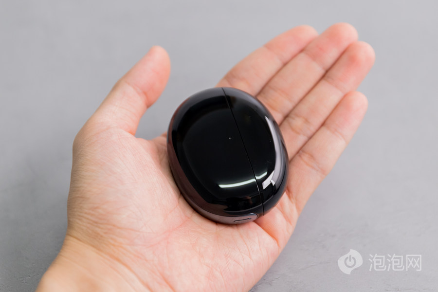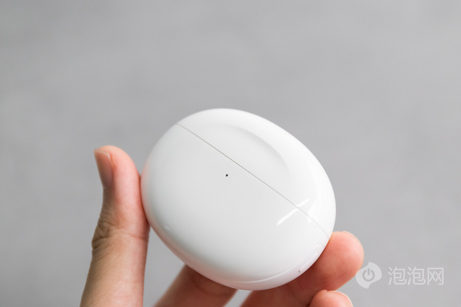 OPPO Enco Free2充电盒延续了Enco X的椭圆形轮廓,握在手中圆润舒适。充电盒整体尺寸不大,较为扁平,耳机盒+耳机重量约为47g。放进口袋里携带也很轻松。