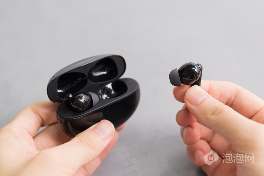耳机同样为圆润的设计,耳机头比不少同类型产品都要略小,降低对耳道的挤压感。耳机杆长度控制得也很好,耳机整体尺寸在主流产品中算是控制得不错的,单个耳机重量为4.4g。OPPO还建立了专业的人耳数据库,可有效改善佩戴时耳机对耳道的压感,兼顾舒适度和稳固性。为了减少闷耳感,OPPO还改进了耳帽形状,可以帮助释放耳压。