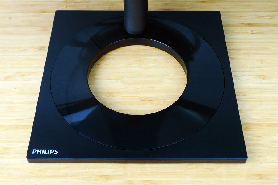 飞利浦四边零界悬浮屏显示器279C9的底座设计非常有创意,正方形的外形中有一个圆环,这个圆环既是装饰,同时也可以旋转,从而改变显示器的角度,便于我们将显示器的内容与他人分享。