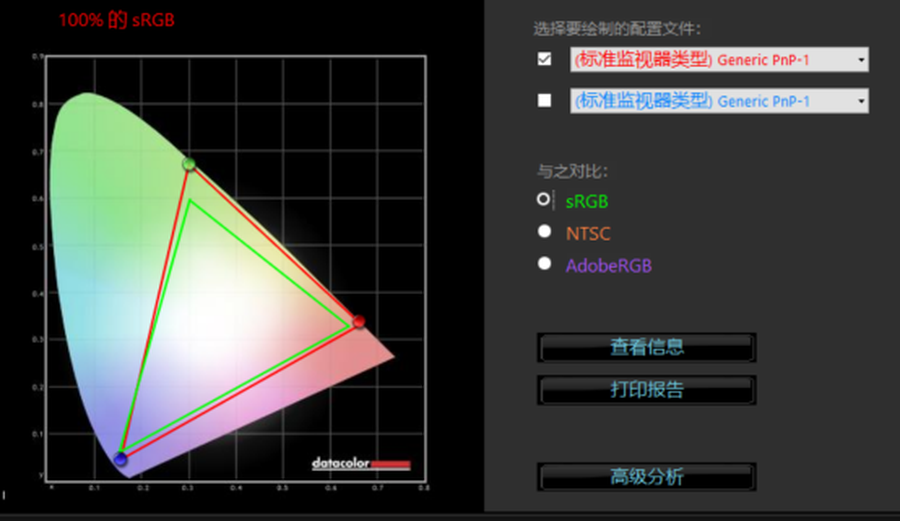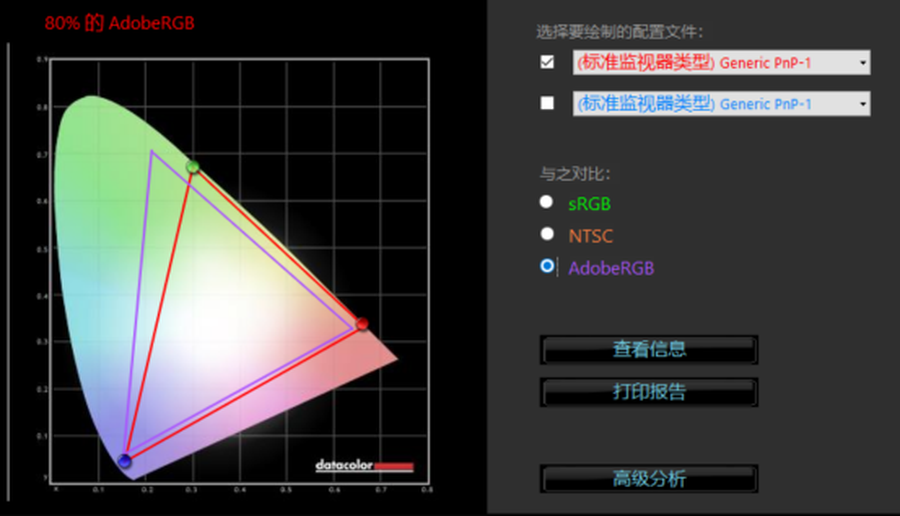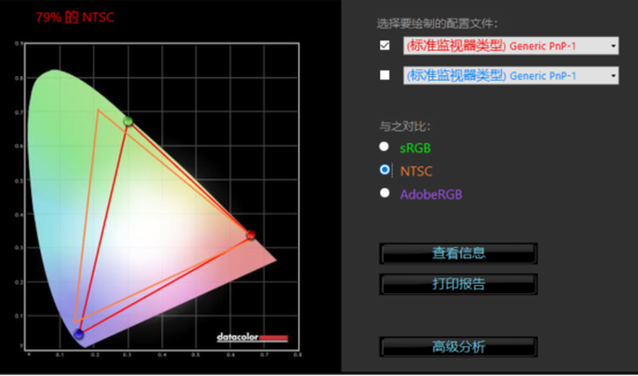 测试小结:这款显示器具备了100%的sRGB、80%的AdobeRGB、79%的NTSC色域覆盖率。对于一款影音娱乐显示器来说,这样的色域表现非常不错。
