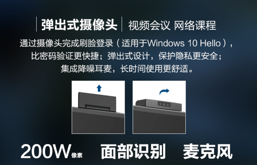 飞利浦346P1CRH显示器还配备了一个200万像素的弹出式摄像头,集成降噪耳麦,视频会议、上网课等场景更方便,无需再准备独立的视频通话设备,这颗摄像头也支持Windows 10 Hello刷脸登录,登录更方便。弹出式摄像头设计能从物理层面保护用户隐私,不用担心隐私泄露。
