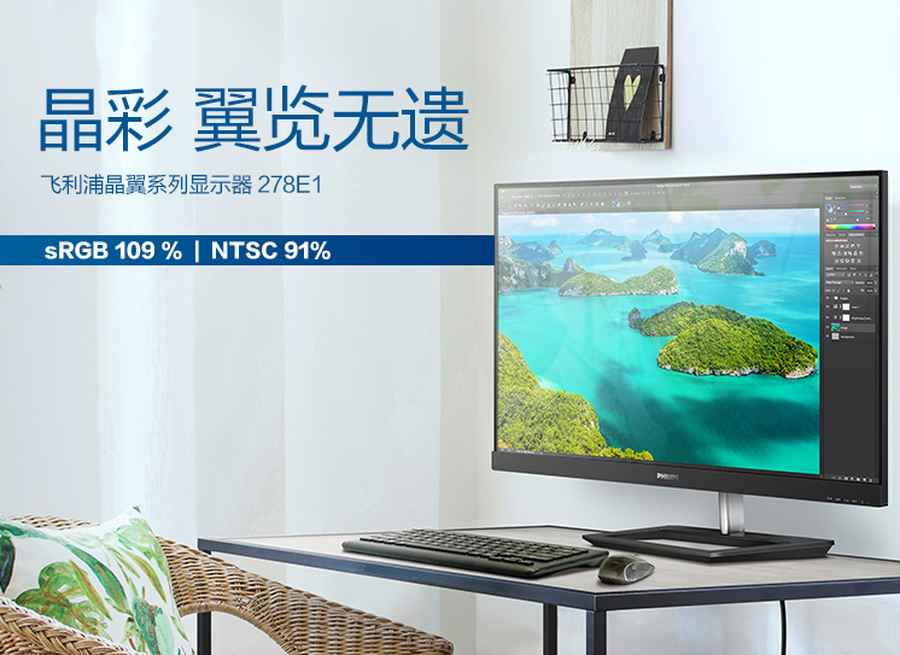 飞利浦278E1是一款27英寸的4K显示器,搭配IPS硬屏,分辨率为3840×2160,画面的细节表现锐利清晰。同时,这款显示器具备91%的NTSC色域,色彩更加逼真,即使应对影视后期、视频处理等专业性较高的应用,也是能够较好胜任的。