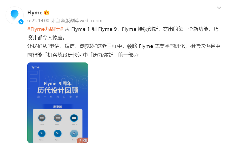 Flyme九周年,魅族官方回顾了从 Flyme 1到Flyme 9的设计,包括“电话、短信、浏览器”这老三样设计。