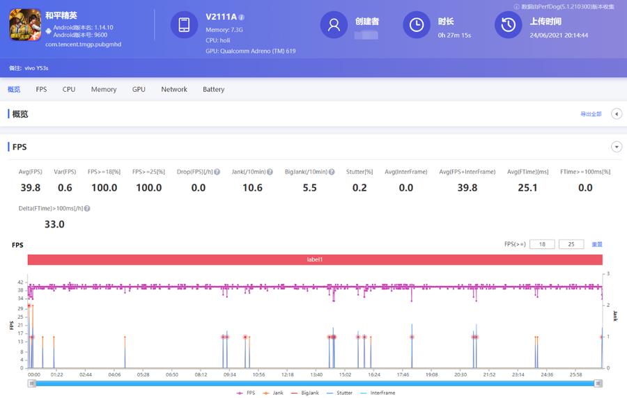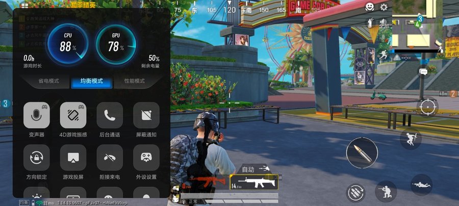 《和平精英》在均衡画质下可以开启超高帧数,其余均为特效全开。软件记录到的游戏平均帧数为39.8帧,大部分场景的波动幅度都不算大,开车、对战等操作都很流畅。这款游戏还支持4D振感功能,开启后开枪等场景会提供振动反馈,增加游戏沉浸体验。