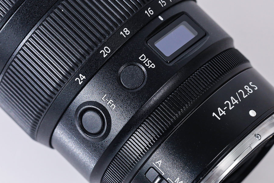 尼康Z 14-24mm f/2.8 S镜头的一大特点是具备一个迷你的显示窗口,可通过DISP按键来切换光圈、焦距等不同的信息,还可以通过L-Fn的自定义键来设定自己喜欢的功能。