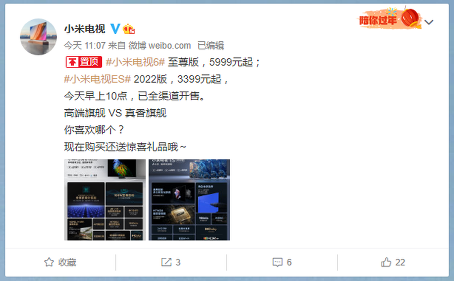 小米电视6至尊版与小米电视ES全渠道开售