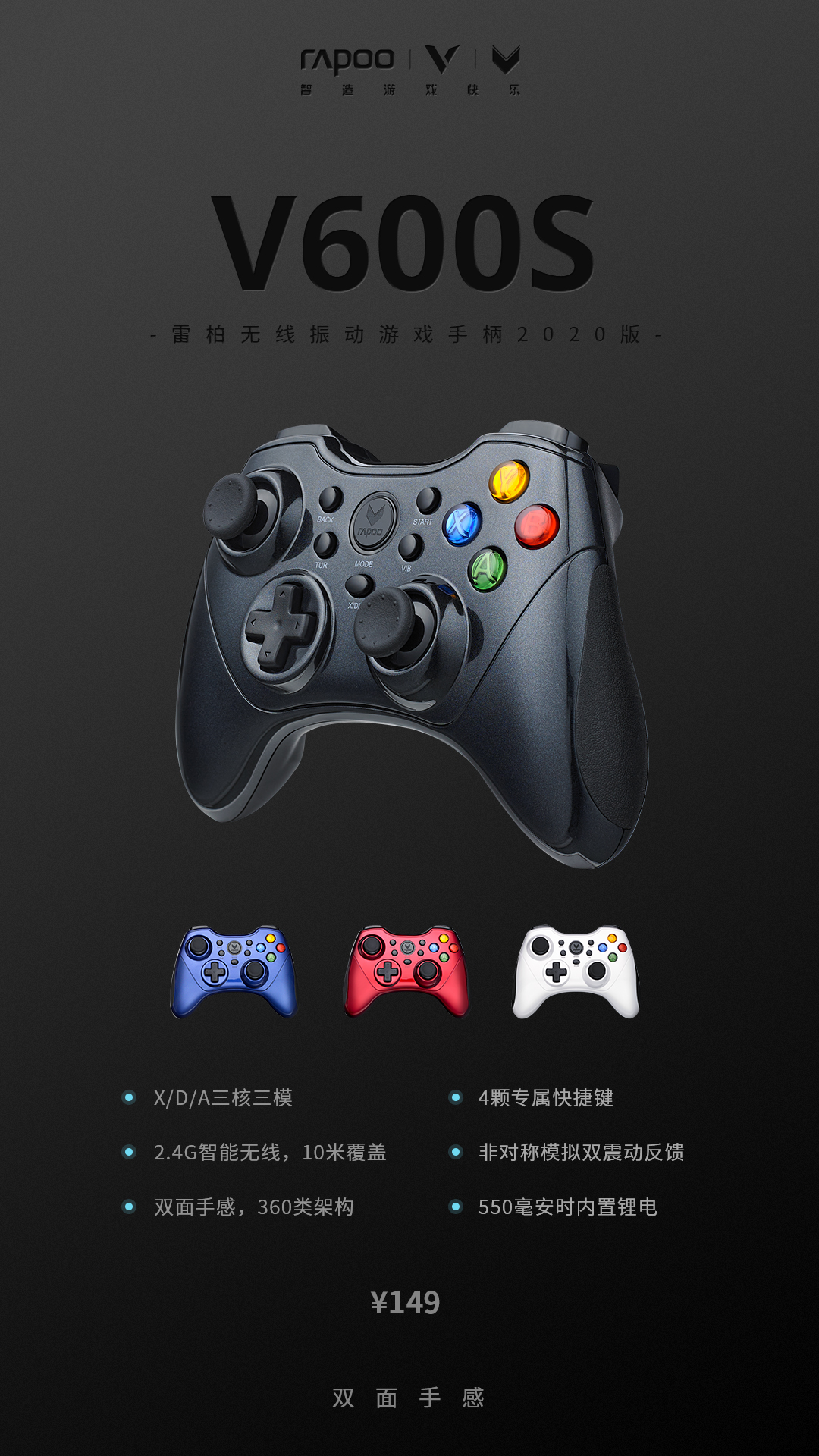 雷柏V600S采用的5S级人体工学设计的优势在游戏体验中非常明显,左摇杆的定位精准,能更迅速的移动人物。右摇杆视角流畅迅速;ABXY四颗按键确认感强,各种动作行云流水;左右线性弹力扳机键使用技能迅速且灵敏;V600S背部两个采用的黄金比例分割的3段流线型波纹指位槽握把,使得操作舒适,更贴近自然掌控。相比较手机,使用手柄的优势在于多重功能按键可同时进行,此外,手指不会再阻碍到视野,享受全屏游戏,掌控全局,操作更加灵活多变,不再手忙脚乱。