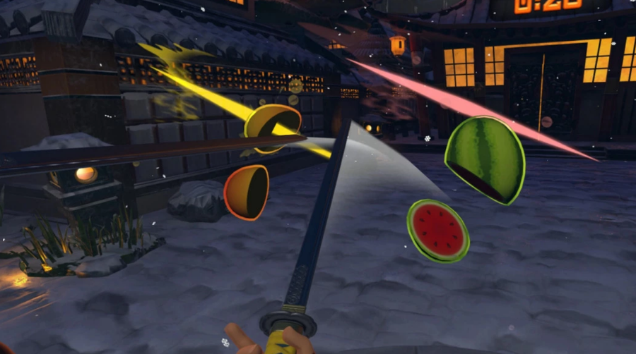 第一款是《水果忍者》,对于这款游戏想必大家都很熟悉了,不过VR版的《水果忍者》依然能够给玩家带来全新的感受,在游戏中你将会体验到更加沉浸式的游戏过程,非常有意思。