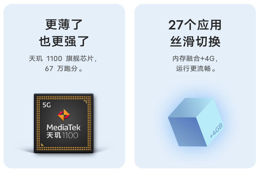 性能方面,vivo S10系列搭载天玑1100 5G处理器,采用6nm制程工艺,支持双模5G全网通,还有内存融合+4G技术。这款手机还配备了4050mAh电池,升级为44W闪充。