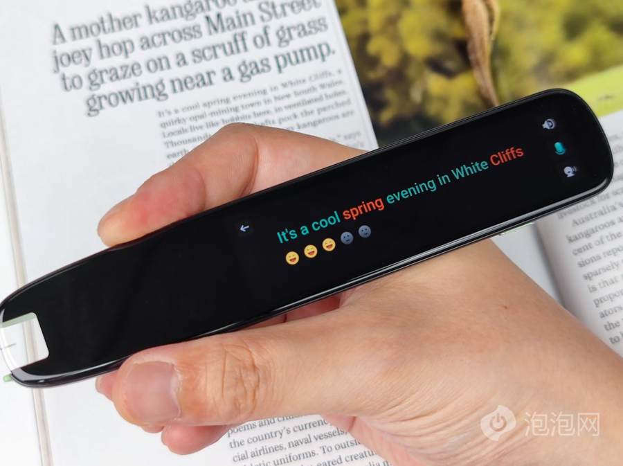 按下语音键,讯飞翻译笔S11可以实现英文的实时翻译功能,准确度以及翻译速度表现都很出色。