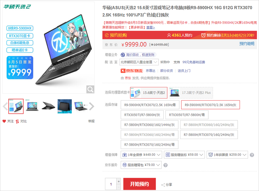 5900HX八核处理器以及RTX3070笔记本电脑GPU,能够带给玩家们更美妙的游戏体验。目前这款新机型已开启预售,8月5日新品发售9999元,值得拥有!