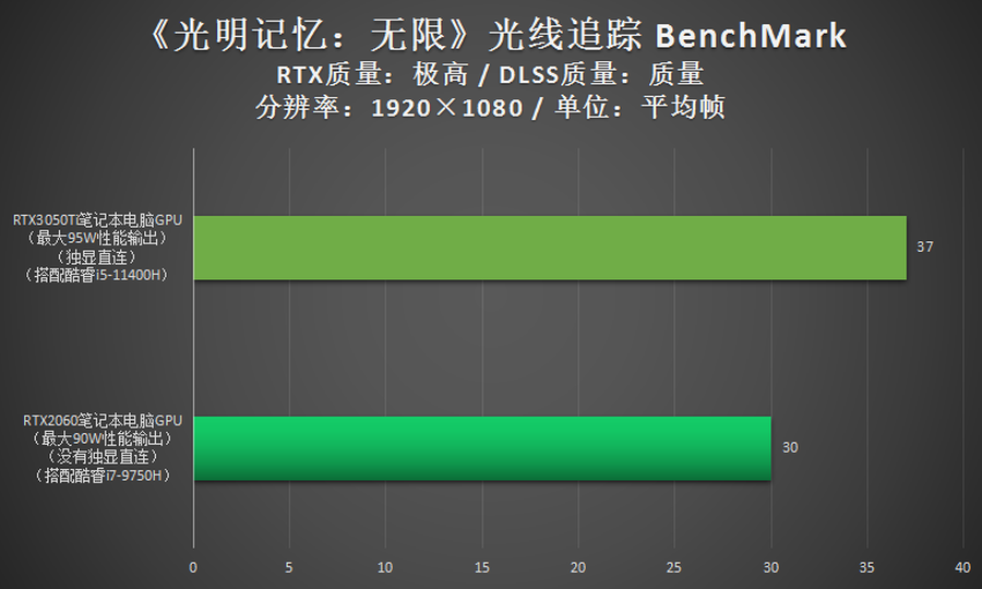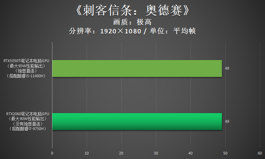 处理器、内存均要更好,还有独显直连设计,在这么多优越的条件下,RTX3050Ti笔记本电脑GPU展现出来的游戏性能说实话是不如上一代RTX2060笔记本电脑GPU的。