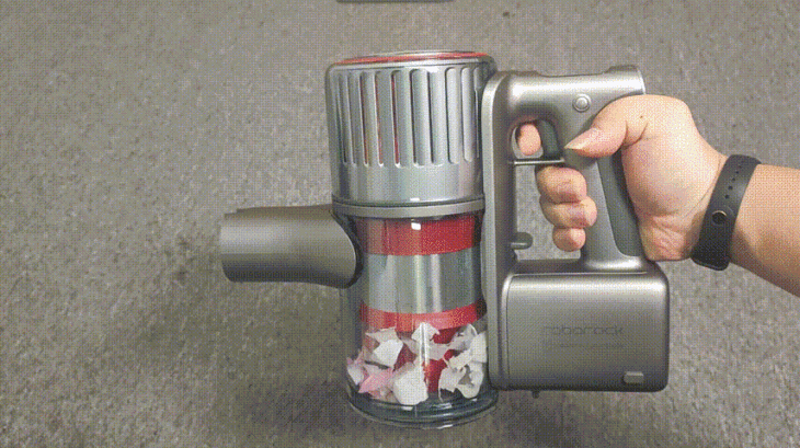 石头手持无线吸尘器H7采用了独特的二级九锥气旋设计,通过气旋将吸入的垃圾进行有效的分离。气旋分离的原理和滤网完全不同,它是通过特殊的结构让吸尘器的气流高速旋转,产生强大的离心力,在离心力的作用下,根据吸入空气与灰尘等杂质的质量不同,使灰尘沉降落入与尘盒中。石头手持无线吸尘器H7的气旋分离设计能有效降低因滤网为堵塞而导致的吸力损耗,更是获得了德国莱茵 TÜV 的吸力无损耗认证。石头手持无线吸尘器H7还进一步升级了尘桶容量,500ml的容量能很好的满足大部分情况下的清洁需求。