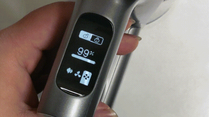石头手持无线吸尘器H7配备了一块OLED屏幕,可以进一步显示吸尘器目前的电量、剩余使用时间、充电情况等信息。