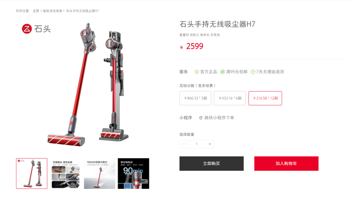 这一款产品可以有效覆盖家庭清洁的各种问题,对于边角、高处部位都能很好地处理。而聚合物锂电池快充、OLED 屏幕、锁定按钮、磁吸式配件收纳等一系列优化的加入,也体现了石头科技为用户所带来的人性化产品思考,让科技为更多人打造美好生活。现阶段,石头手持无线吸尘器H7正在火热开售中,售价为2599元,感兴趣的朋友可以前往各渠道进行购买。