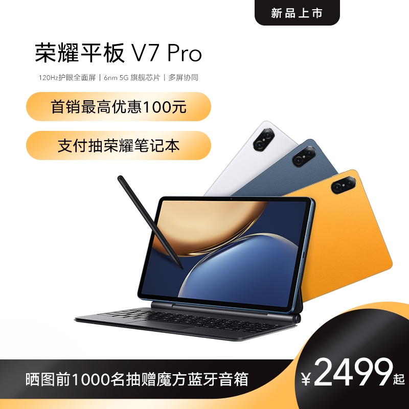 8月19日,荣耀平板V7 Pro正式开启首销,WiFi 6GB+128GB版本首销优惠价2499元,WiFi 8GB+128GB版本售价2799元。
