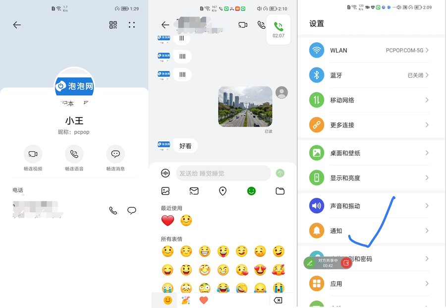 畅连功能支持与朋友之间发送消息、图片、语音、视频通话,视频通话中还能共享屏幕,同时通过“涂鸦”提示对方操作,远程指导不熟悉手机的长辈非常方便。