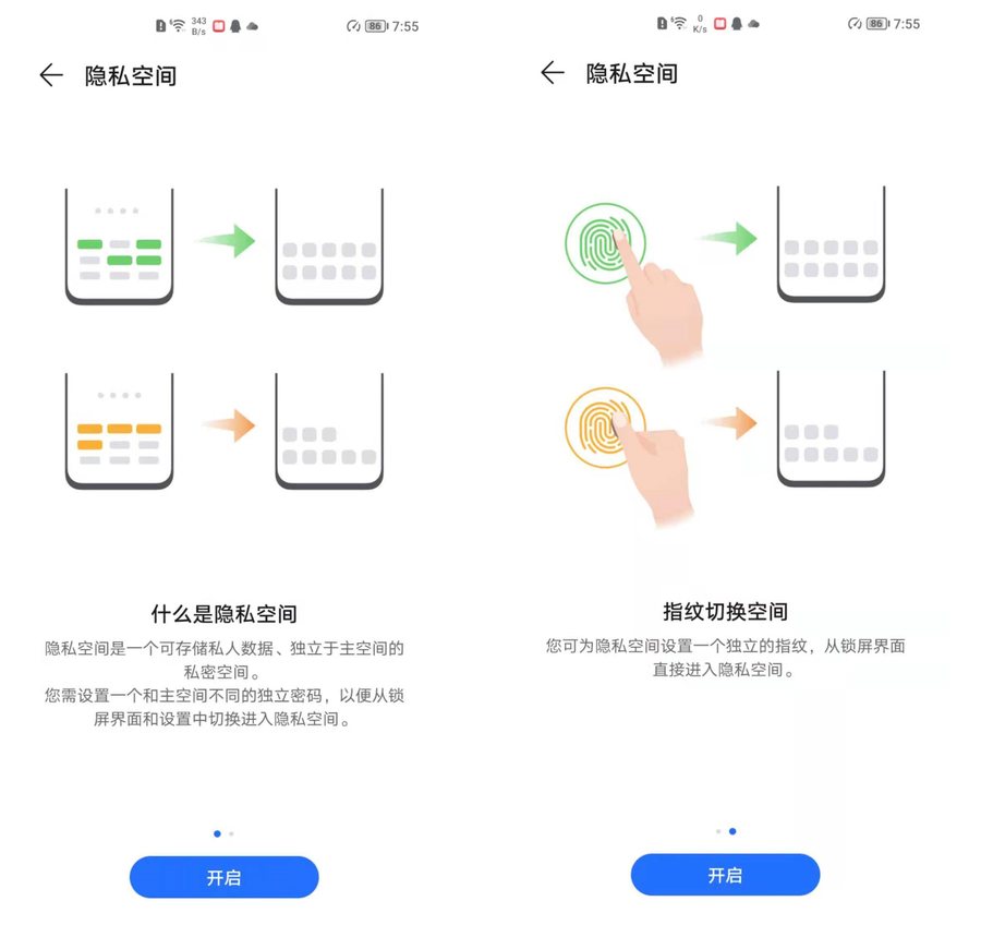 隐私空间则是相当于可以给手机添加一个新系统,设置不同的密码或者指纹即可进入另一个“私密空间”,进入后主空间和私密空间之间的应用、数据都相互独立,无法互相查看。