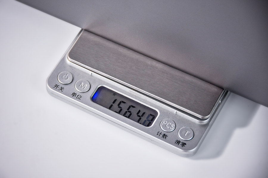 经过实测,这款轻薄本的机身质量约为1.565kg,外出携带比较轻便。