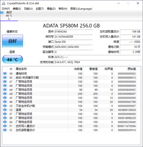 256GB M.2固态硬盘,采用的是SATA 6Gbps的传输模式。