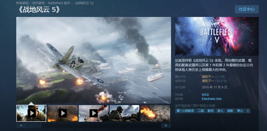 8 月 30日消息 ,《战地 5》近日在 Steam 上开启了免费试玩,同时,《战地 5:终极版》也在 Steam 开启了 1 折促销活动,原价 228 元,现价只需 22 元。