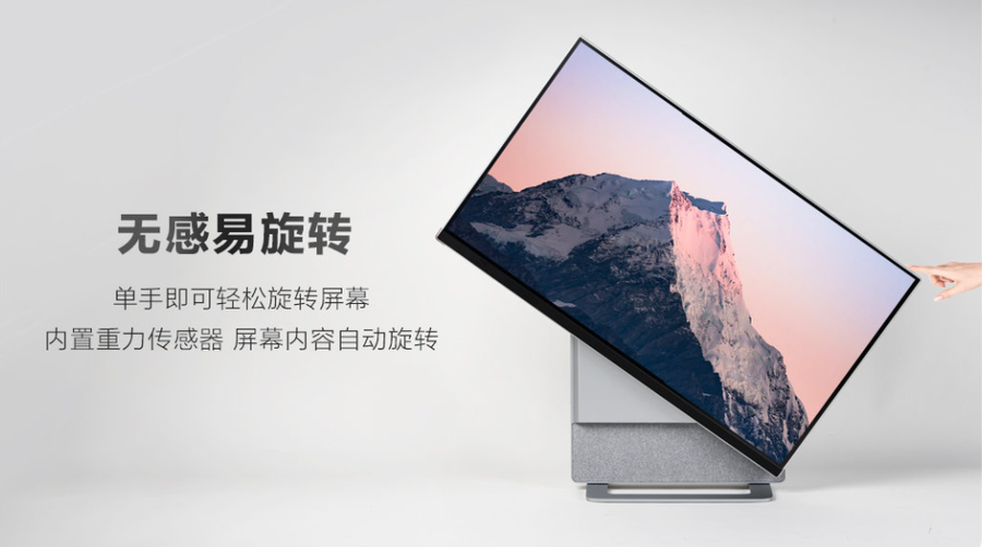 联想YOGA 27 2021一体机采用双轨道设计,单手即可轻松旋转屏幕,内置重力传感器,屏幕内容自动旋转。