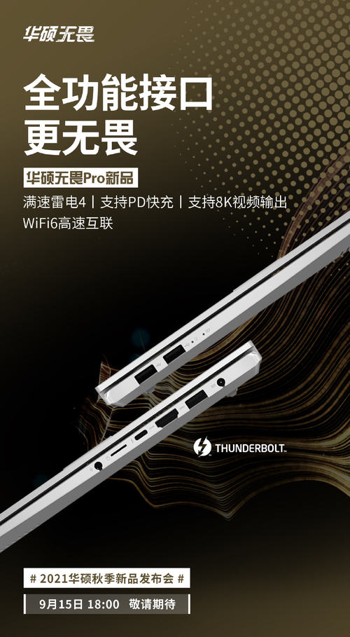 华硕无畏 Pro系列新品配备满速雷电4 Type-C接口,支持PD快充、8K视频输出,满足更多场景需求。